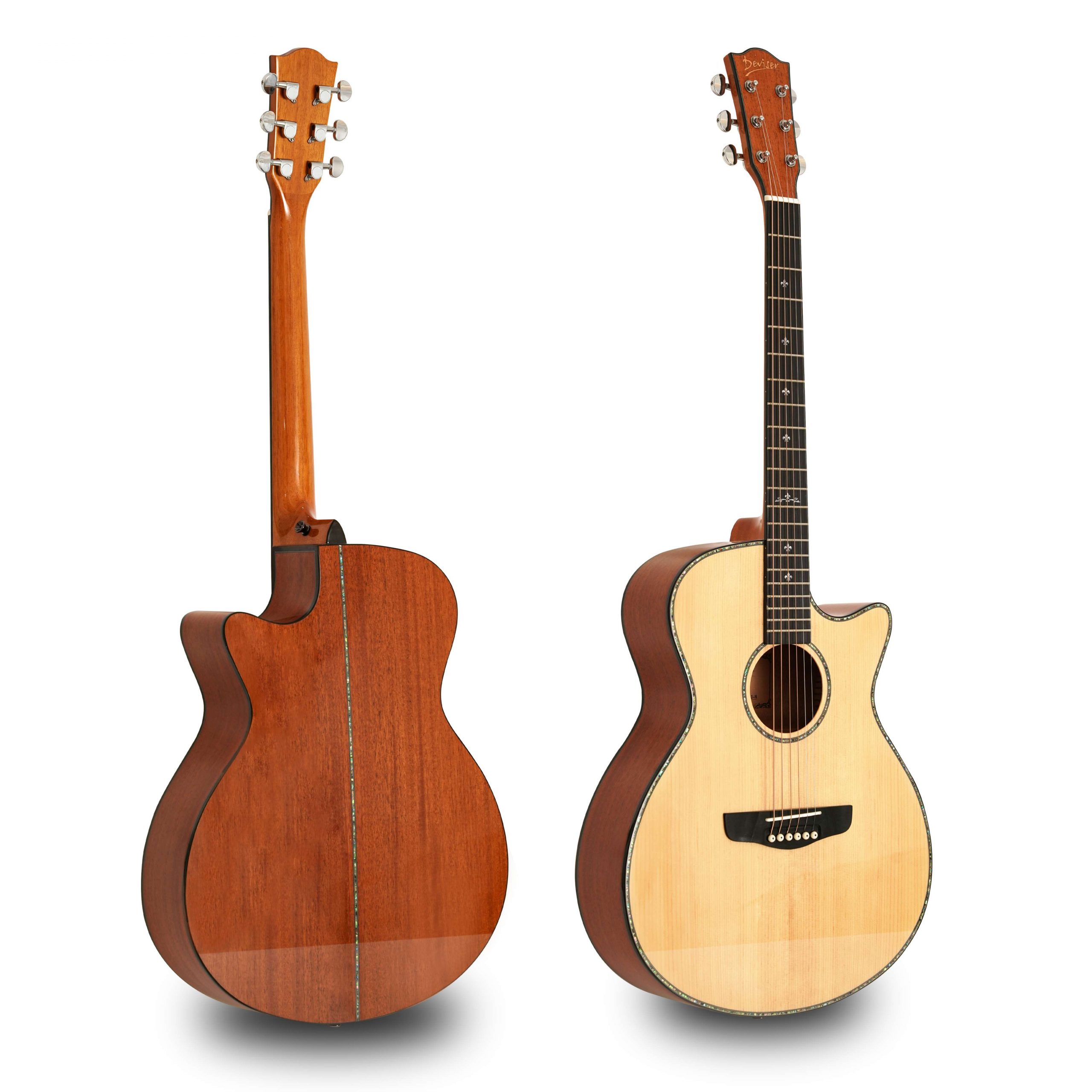 Deviser is one of our popular guitar brands, including LS, LK, and L series guitars. The LS series has 36inch, 40inch, and 41inch guitars, the basic materials of the guitars above are spruce and walnut. The L and LK series of guitars are glossy guitars, including 40 inches and 41 inches. Sapele, Mahogany, and Catalpa are the wood used. All Deviser acoustic guitars have OEM service.